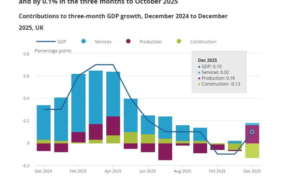 Preliminary data from the Office for National Statistics showed the UK economy recorded only modest expansion over the final three months of 2025.