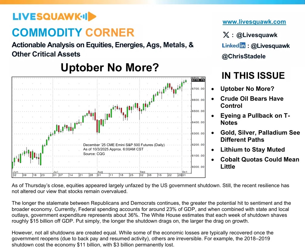 However, not all shutdowns are created equal. While some of the economic losses are typically recovered once the government reopens (due to back pay and resumed activity), others are irreversible. For example, the 2018–2019 shutdown cost the economy $11 billion, with $3 billion permanently lost. (LiveSquawk – Continue Reading)