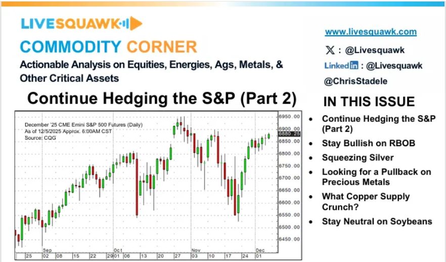 Through yesterday’s close, volume on Dec ’25 CME Emini S&P 500 futures was barely higher than that of last week’s Thanksgiving holiday-shortened trade. Not only is this highly unusual, it also suggests that neither bulls nor bears have control of the market. That said, this week’s price action has created what chartists call a “hanging man” candlestick pattern, which usually portends lower prices.