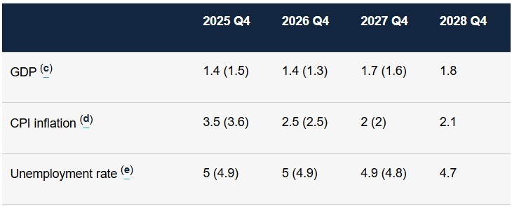 UK economic growth was expected at 1.4% this quarter, a forecast down a tenth from the August estimate. However, projections for GDP expansion in the coming fourth quarters were raised a tenth to 1.4% next year and 1.7% in 2027, with growth of 1.8% predicted for the final three months of 2028.