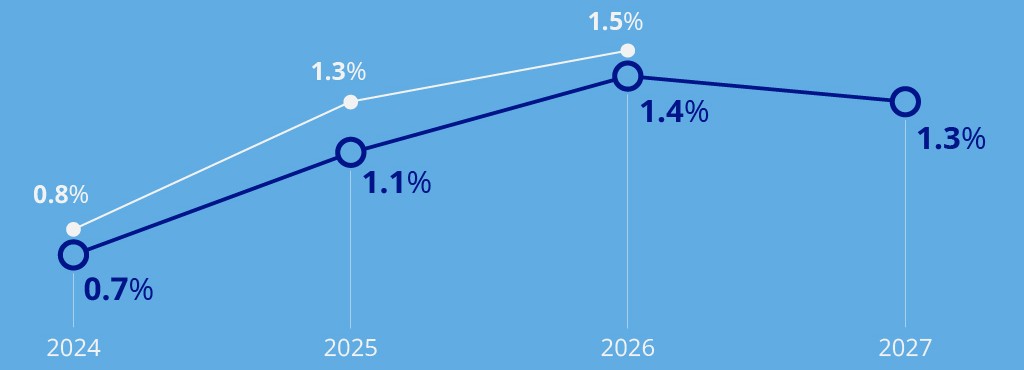 Forecasts for inflation excluding energy and food, the so-called core rate, were little changed, with the 2024 rate remaining at 2.9% and 2.3% expected in the following year. The bank lowered its expectations for 2026 a tenth of a point to 1.9%, which is also the outlook for 2027.