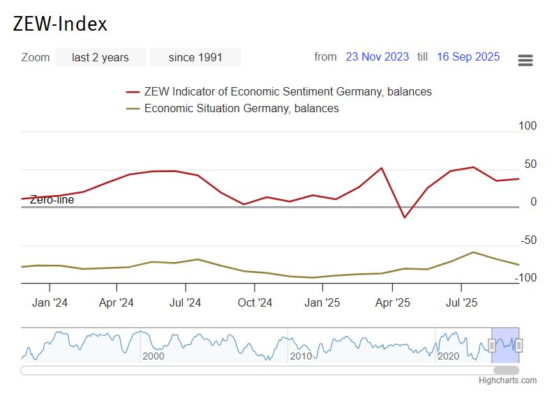 - ZEW sentiment index expected to rise to 41.1 points in October - Fiscal stimulus, defence spending plans face structural hurdles - Weak industrial and trade data underscore a fragile recovery - PMI uptick hints at stabilisation in manufacturing and services