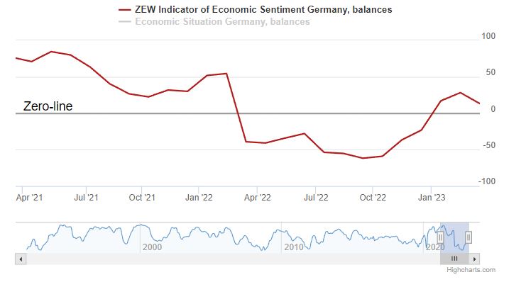 Germany’s ZEW economic thinktank said its March expectations measure for the coming six months fell to 13.0 points, which was below the market estimate of 15.0 and well off the 28.1 reading in February. After nearly a half year in negative territory, the indicator returned to the black in January.
