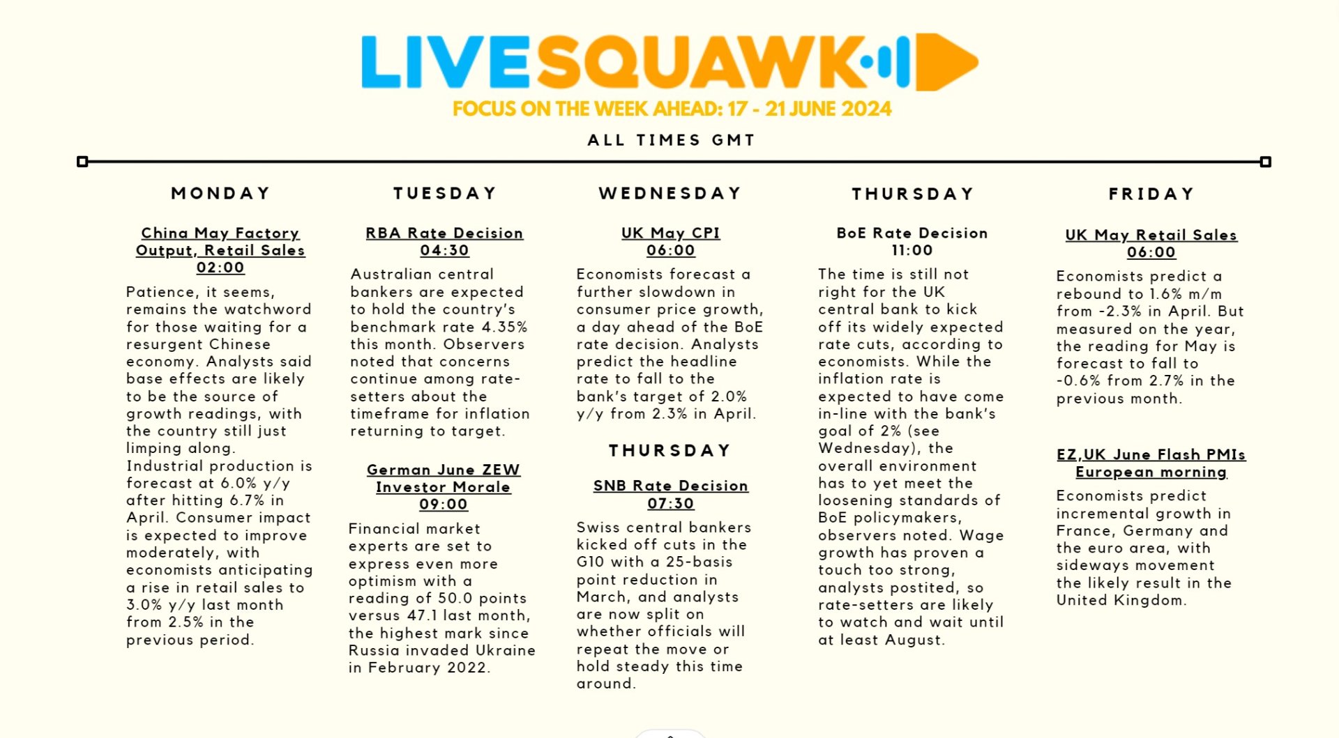 06:00 - UK May CPI/Core CPI Consensus: 2.0% (prev 2.3%) / 3.4% (prev 3.9%)