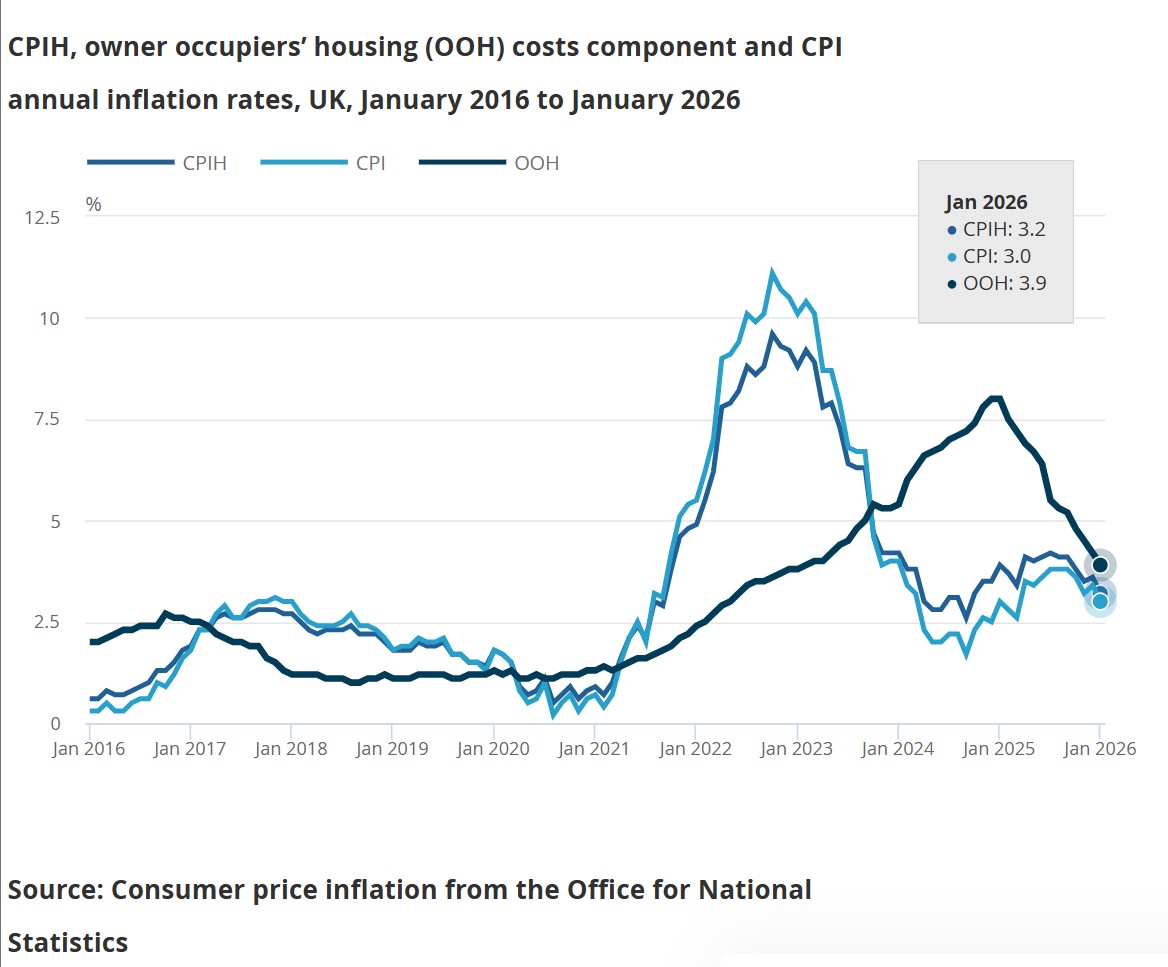 The Office for National Statistics (ONS) said headline CPI rose 3.0% y/y in January, in line with estimates and down from the prior 3.4% print. On the month, the index also matched forecasts, falling 0.5% after a 0.4% rise previously.